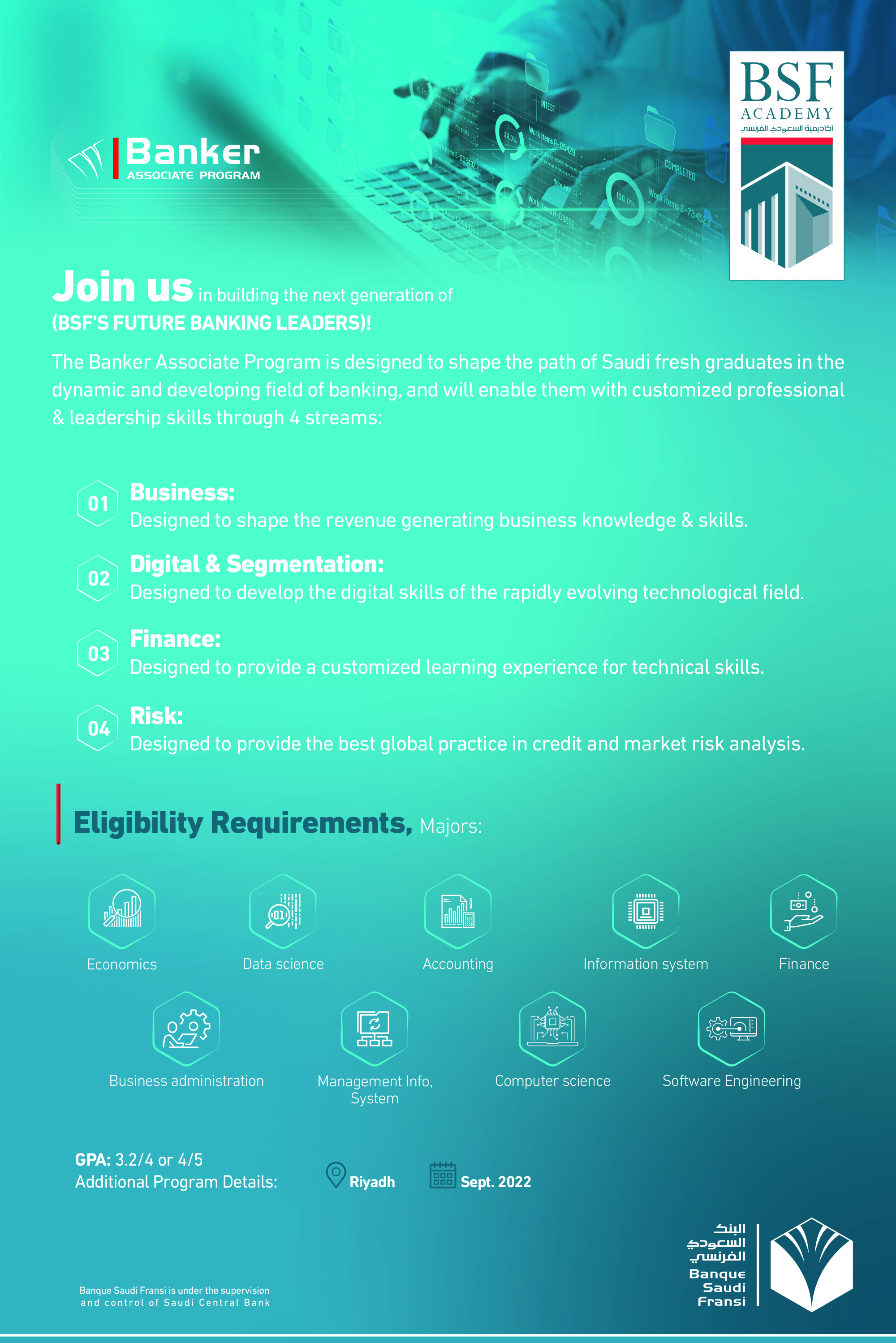 From the first day you join the BSF Bankers Associate Program you will be part of our vision to transform banking in the Kingdom.
